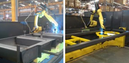 Soluciones básicas y/o complejas en automatización flexible con robots para soldadura de componentes para estructuras metálicas tipo H, I, cajones, joist y cualquier tipo de arreglo, al igual que líneas de armado y soldadura automatizadas.